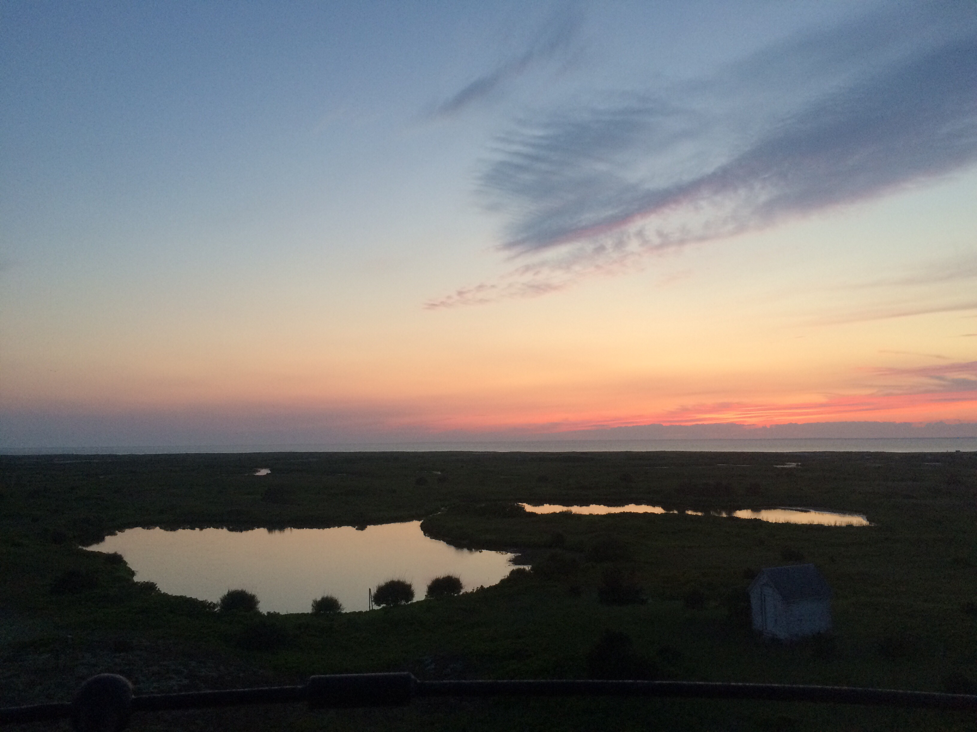 Sunset over ponds and Powder Hole, from the top of the light