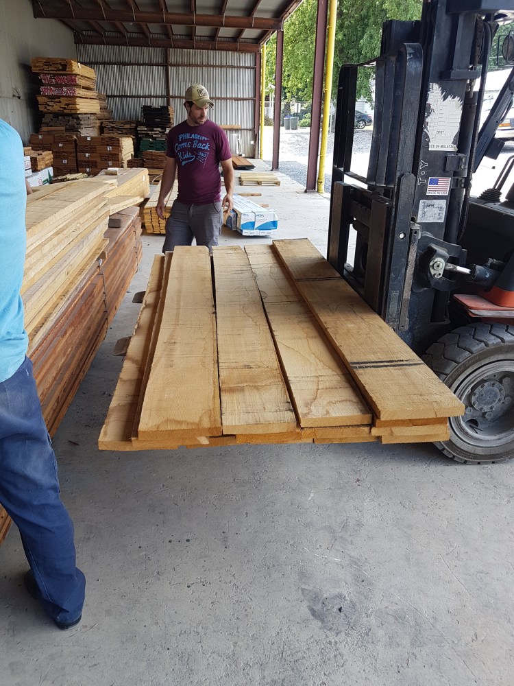 A trip to Delaware County Supply yields most of the wood (white oak and sapele) we’ll need to for early stages of construction. Out of a few hundred pieces we examine, only a couple dozen make the cut for inclusion (which makes me wonder about what the rest is going to be used for).