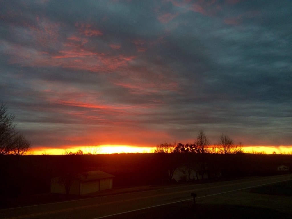 Trying to make the most of a rainy day in Illinois, I got going on Saturday about half an hour before sunrise. Since I’ve mostly been letting the sun wake me up, this was the first time I’ve been able to watch the sun coming up in a few weeks- and it was fantastic. (The sunrise is one of my favorite things about rowing, incidentally, and makes it worth getting up at 5 to go splash around in the dark.)
