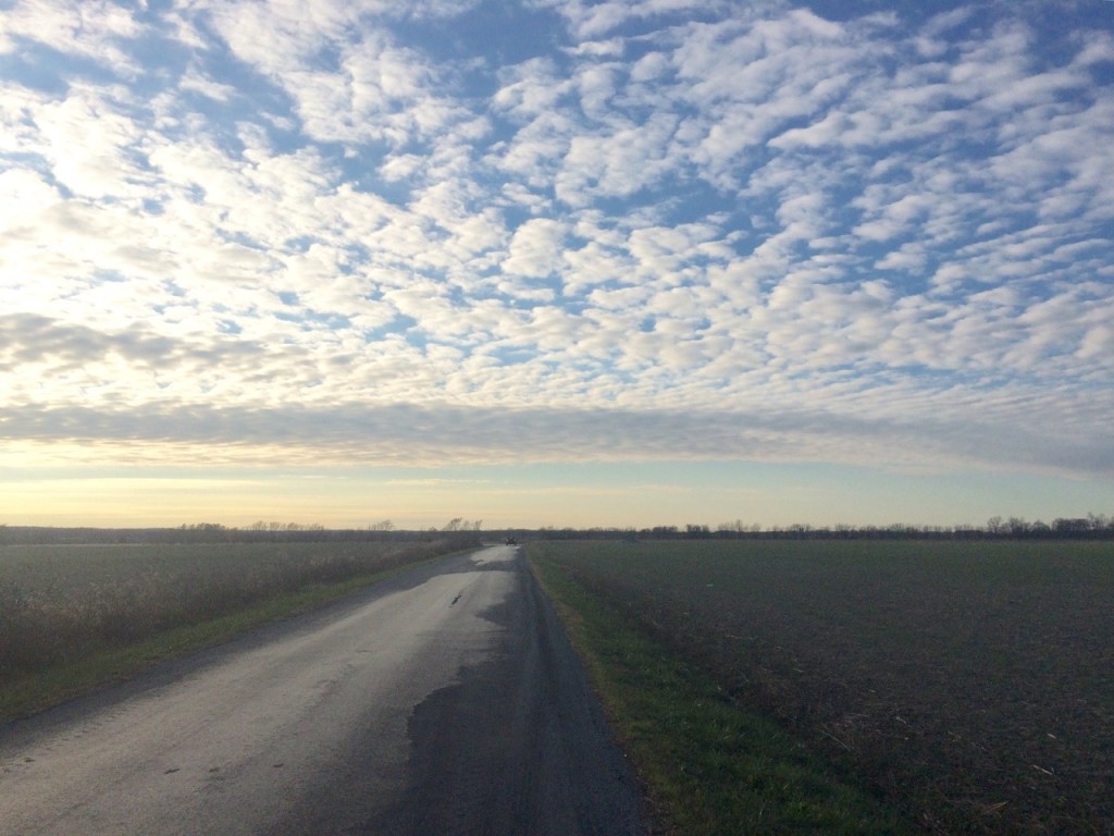 I was able to make about 10 miles before the rain started. The next five hours weren’t particularly exciting- I ate breakfast, read, took a nap, and remarked on how it was getting colder as well as windier and rainier- but finally the rain cleared and I got back under way again. While it was finished with its rainy antics, Illinois still had plenty of tricks left to throw at me: rolling hills, the famous “wind coming from every direction you’re trying to bike in,” and even a few snowflakes (I counted 7). As the day went on, the wind gradually lessened and the hills flattened out, so by the time the sun was down, the riding was more or less tolerable.