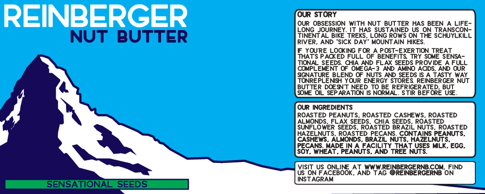 Reinberger Nut Butter is America’s leading all-natural nut butter company. It’s simple – simple recipes, simple ingredients, simply the best. Starting out in a friend’s house in Boston the night before a race, to slowly developing our recipes in our kitchen in Philadelphia, now proudly available by web order across the East Coast, and soon to be available across the country through our partnership with Loop, I’ve spent the last three years not only expanding the company’s production and distribution capabilities, but also developing it’s visual style and branding language. Here’s a look at the evolution.